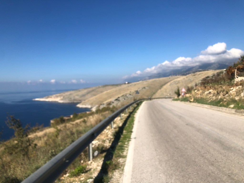 Llogara Pass is a high mountain pass in the Ceraunian Mountains along the Albanian Riviera. We rode for 15 miles up a very steep mountain pass, which was more taxing than crossing the Alps in Austria via Brenner Pass. Once we reached the top, the reward was 12 miles of steep downhill switchback thrill, a heart-pounding experience that left me breathless. I was terrified as we shared the descent with cars, camper vans, trucks, and motorcycles. We had made it so far without incident, and the downhill speeds obtained while holding the brakes were exhilarating but VERY scary.